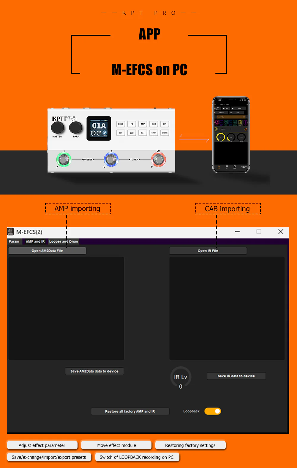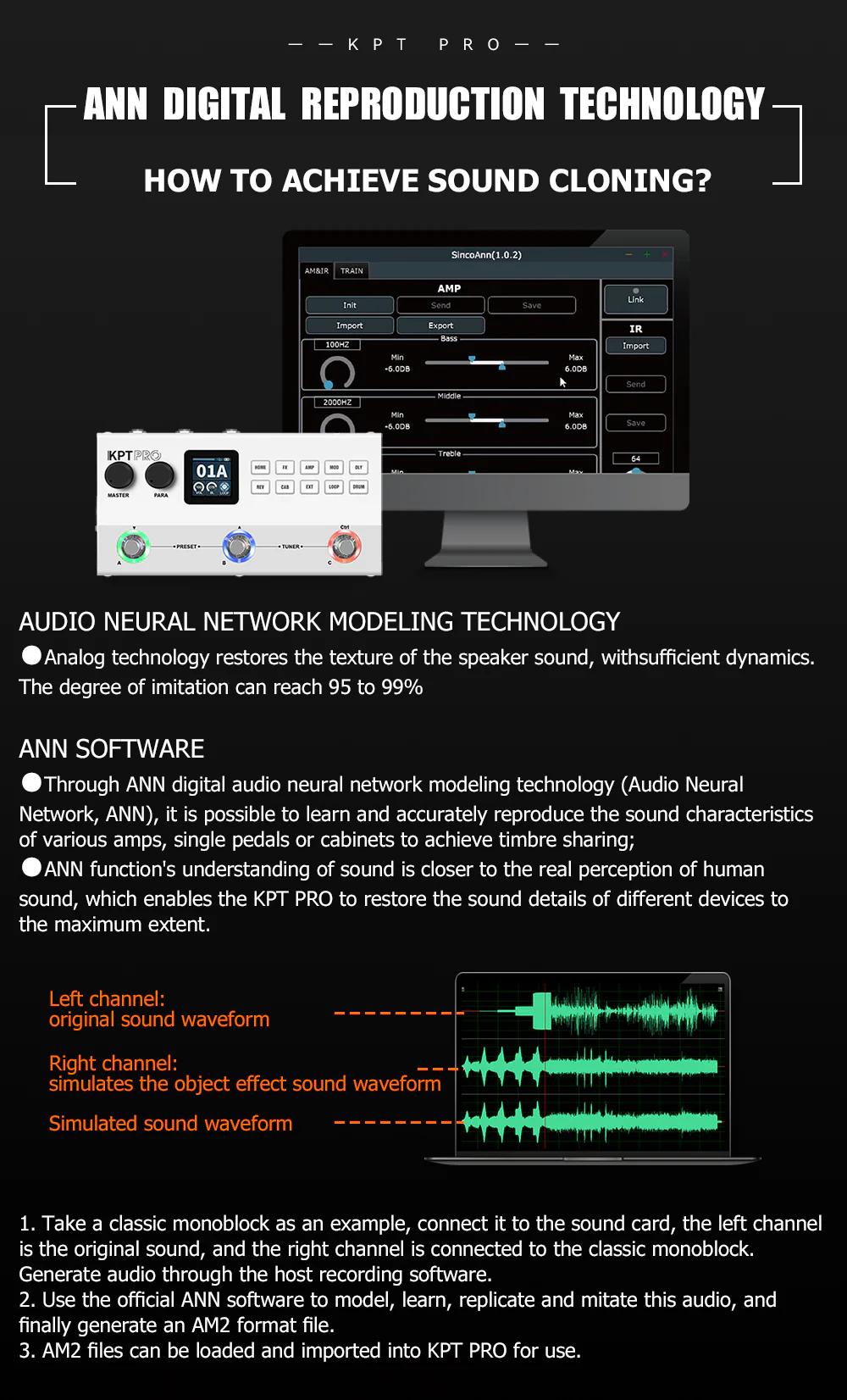 – Màn hình HD/ Sơ đồ chuỗi hiệu ứng/ Thiết kế bàn đạp công thái học/ Công tắc chân C tùy chỉnh menu mô-đun công tắc/ Kết nối có dây hoặc không dây với công tắc chân ngoài